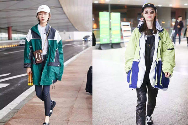 超大碼的沖鋒衣如果搭配不好就會顯得過于臃腫,那么一定要記住上寬下窄的原則。“短款+高腰”是永遠(yuǎn)不可拆散的好搭檔,瞬間可以把上下身比例拉成3:7,同時記得選擇沖鋒衣時,也要get住這一點(diǎn)哦,拒絕合身形的,大大的版型才是王道,下身要搭配利落的小腳褲才有型,避免過于臃腫肥大的搭配。如果這時再踩一雙有跟的踝靴,你就是街拍的焦點(diǎn)。將領(lǐng)口拉大,秀一把鎖骨。當(dāng)然如果下身搭配超短褲露出大長腿,也可以達(dá)到拉長身形的效果。