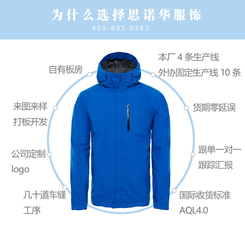 思諾華服飾—沖鋒衣生產廠家貼牌代工單層壓膠沖鋒衣